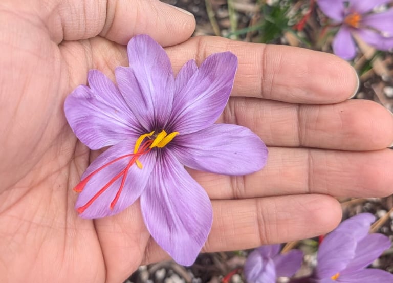 A Unique Opportunity: Immerse yourself in the delicate art of saffron harvesting while enjoying the beauty of our local flower farm.